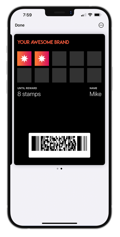 — A customized digital wallet card matching the look and feel of your brand for you to test out yourself